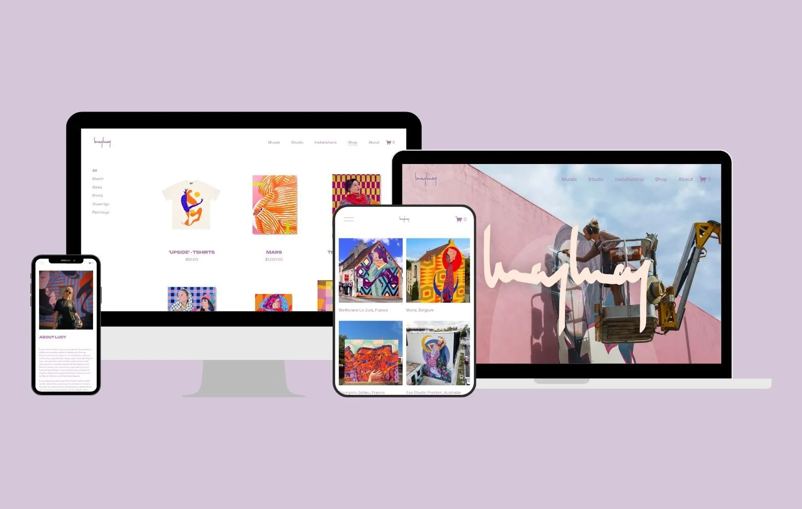 The site was carefully structured to showcase her large-scale murals, limited edition print collections, and original artworks, while offering a seamless shop experience for her collector base.